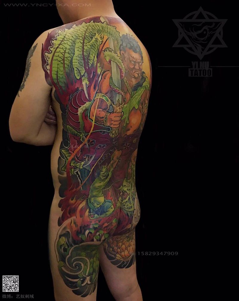 不动明王纹身图片_成品背部传统原创艺奴刺域人物鬼神纹身图案