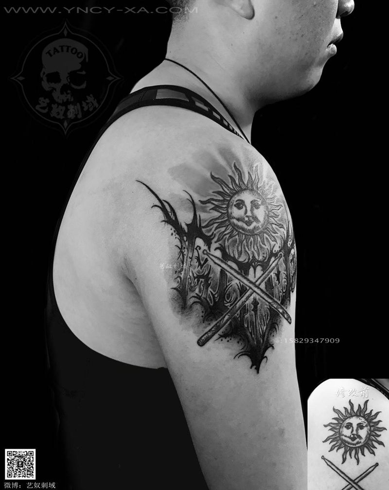 • 纹身吧推荐的披肩图腾半胛纹身图案作品展示