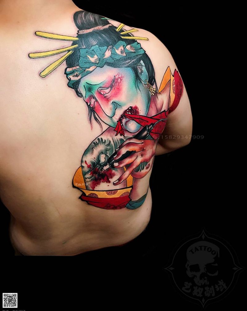 当前位置: 首页 >陕西省西安市纹身店-艺奴刺域纹身图案>原创人物纹身图片_艺奴刺域原创人物传统成品背部纹身图案