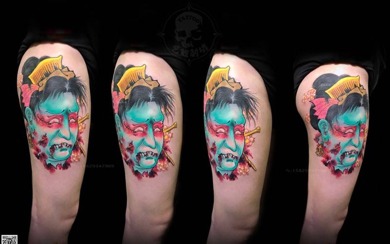 原创传统人物纹身图片_成品腿部艺奴刺域原创人物传统纹身图案