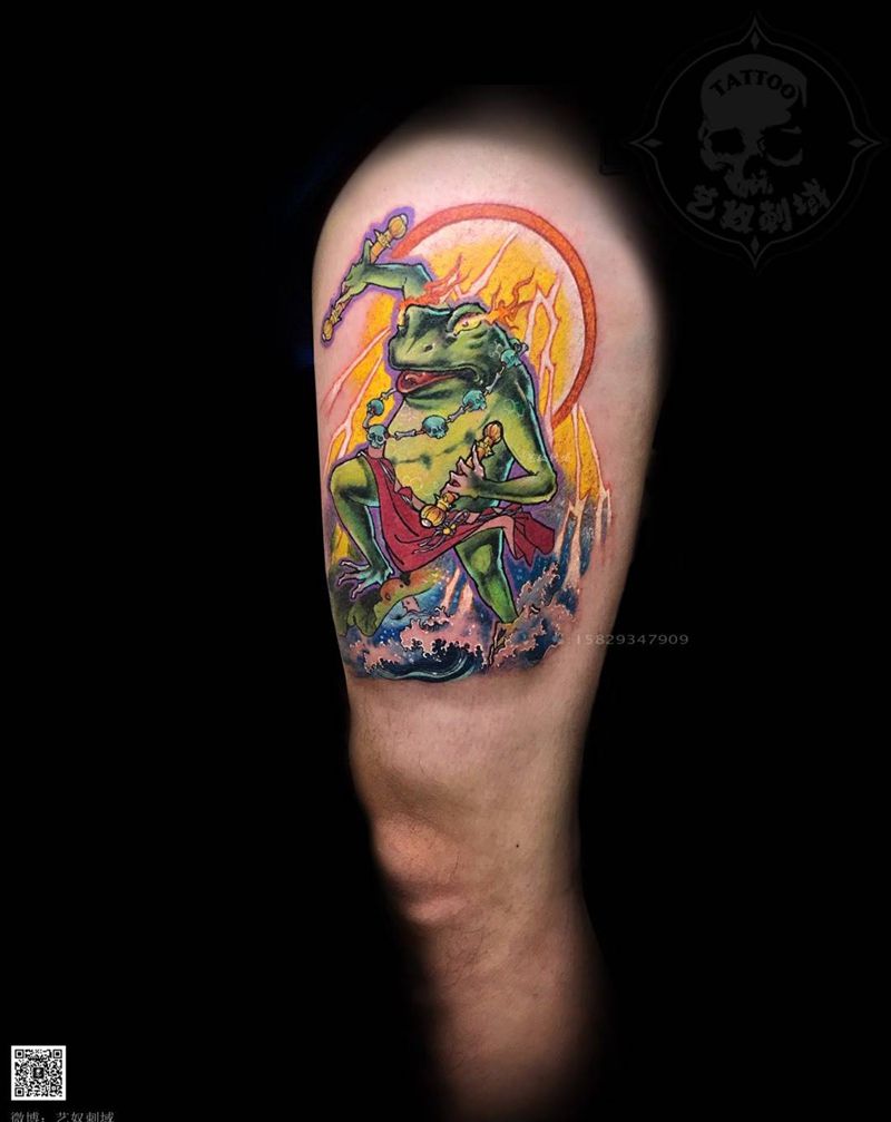 原创大腿纹身图片_艺奴刺域原创动物传统腿部成品鬼神纹身图案