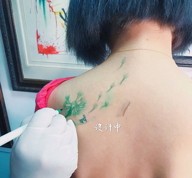 原创蒲公英纹身图片_成品艺奴刺域原创植物清新肩部纹身图案