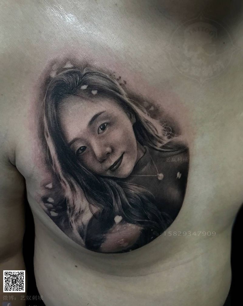 肖像纹身纹身图片_艺奴刺域人物写实肖像胸部成品纹身图案