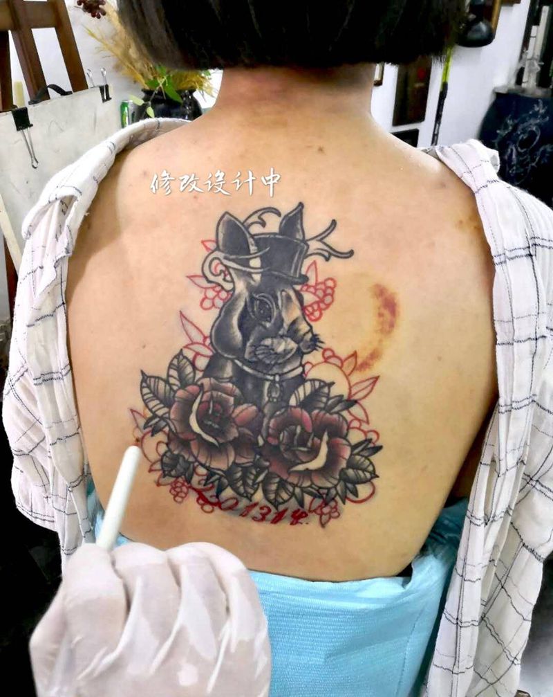 old school修改纹身图片_艺奴刺域欧美动物背部成品纹身图案