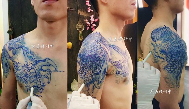 当前位置: 首页 >陕西省西安市纹身店-艺奴刺域纹身图案>和尚老师原创半胛龙遮盖 [呲牙]纹身图片_成品手臂传统动物原创艺奴刺域纹身图案
