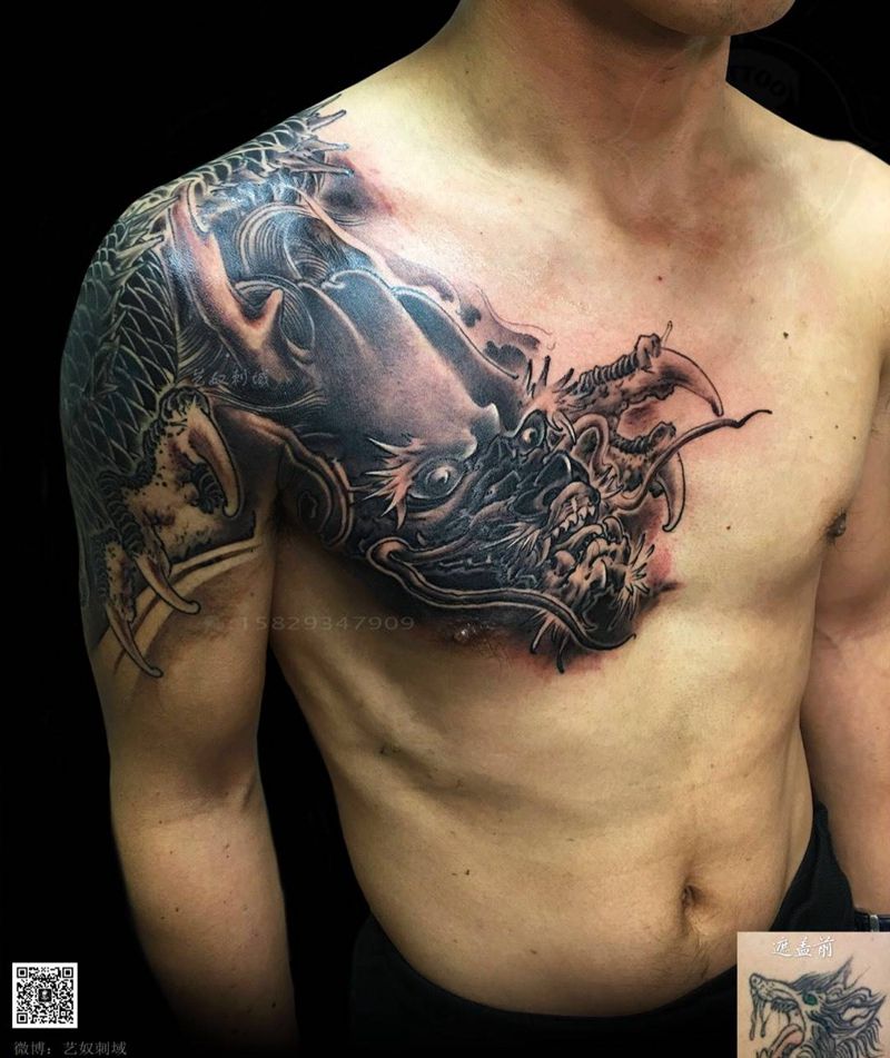 当前位置: 首页 >陕西省西安市纹身店-艺奴刺域纹身图案>和尚老师原创半胛龙遮盖 [呲牙]纹身图片_成品手臂传统动物原创艺奴刺域纹身图案