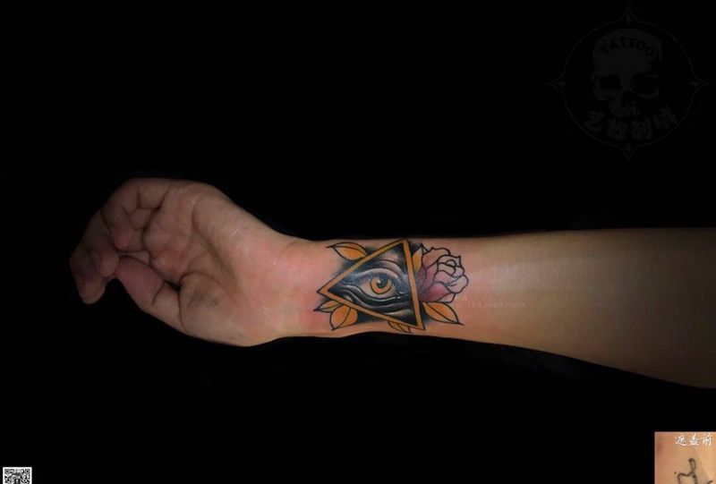 • 手背潮流时尚的玫瑰花眼睛纹身图案