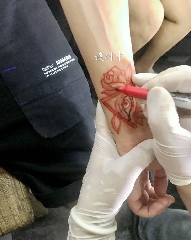 • 手背潮流时尚的玫瑰花眼睛纹身图案