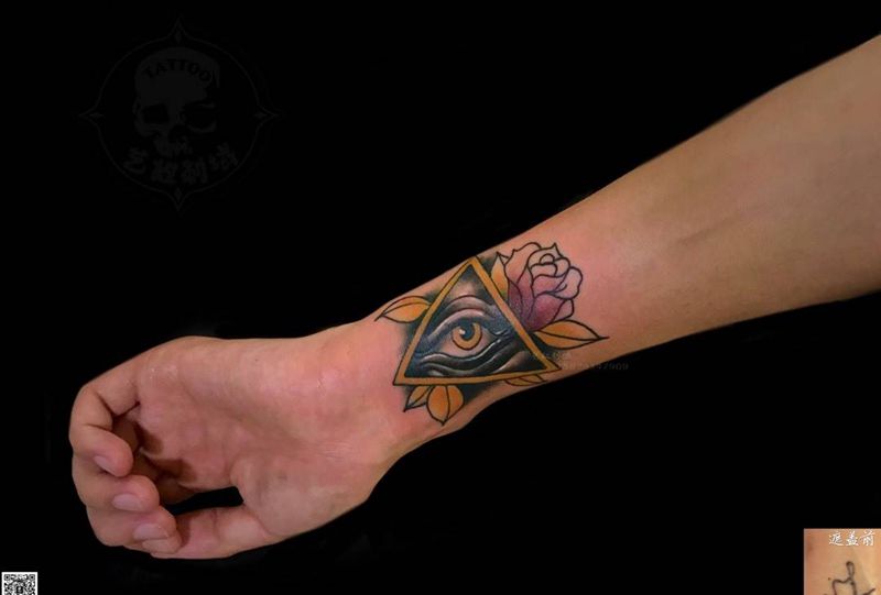 • 手背潮流时尚的玫瑰花眼睛纹身图案