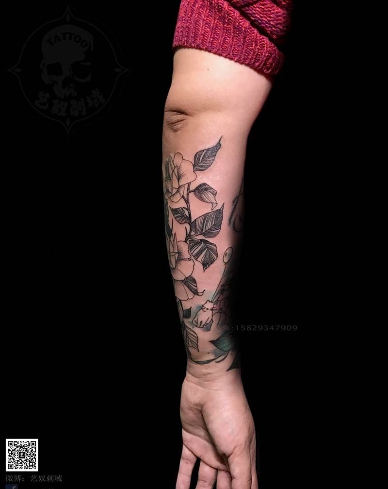 和尚老师设计修改添加纹身图片_艺奴刺域原创人物动物植物清新手臂成品纹身图案