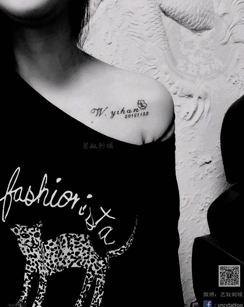 心电图字母纹身纹身图片_成品艺奴刺域字母胸部清新纹身图案