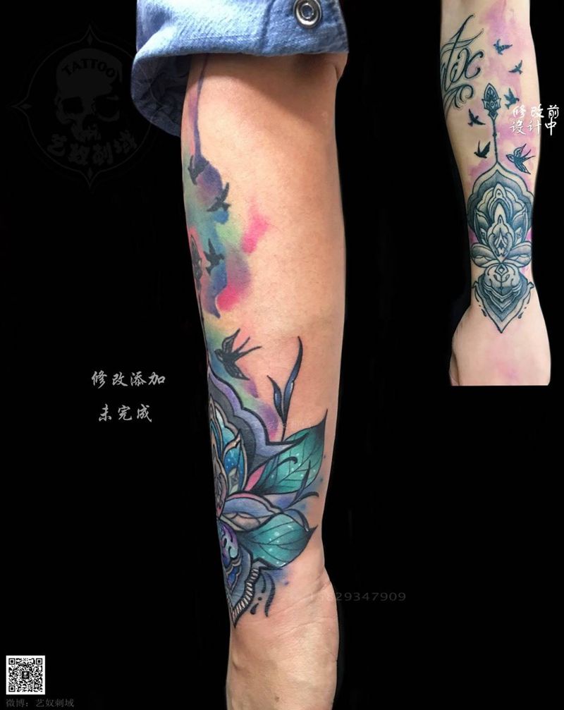 修改添加纹身图片_成品艺奴刺域原创清新手臂肖像植物人物纹身图案