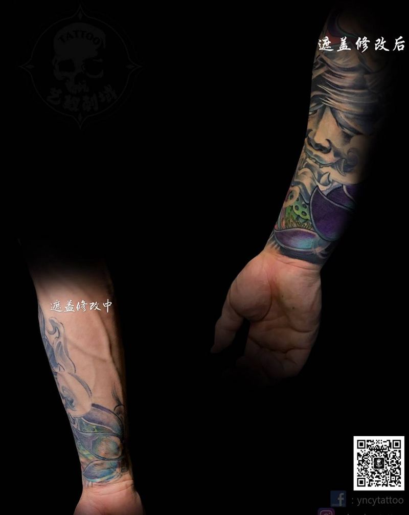 遮盖添加纹身图片_手臂新传统遮盖修改纹身图案