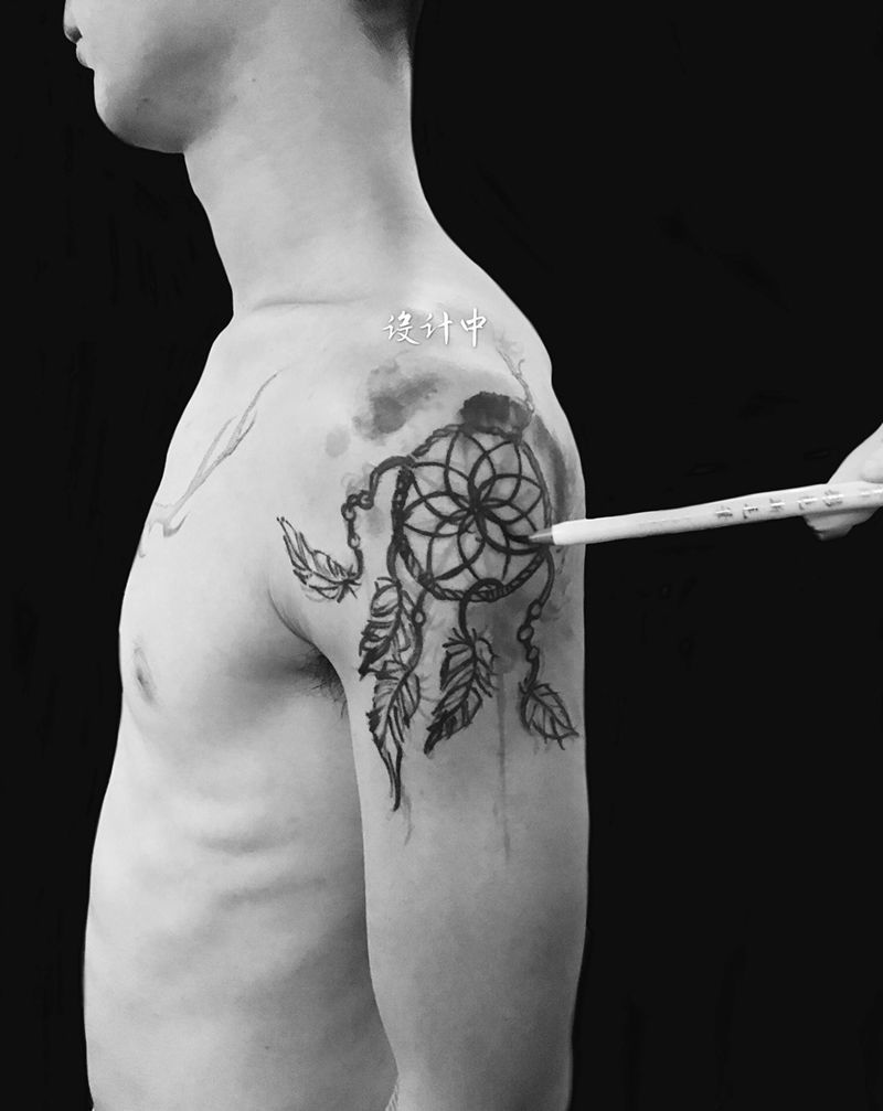 • 纹身吧推荐的披肩图腾半胛纹身图案作品展示
