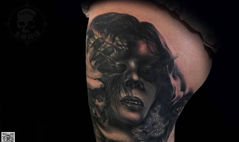 当前位置: 首页 >陕西省西安市纹身店-艺奴刺域纹身图案>和尚老师原创暗黑大腿纹身图片_腿部欧美写实暗黑原创纹身图案