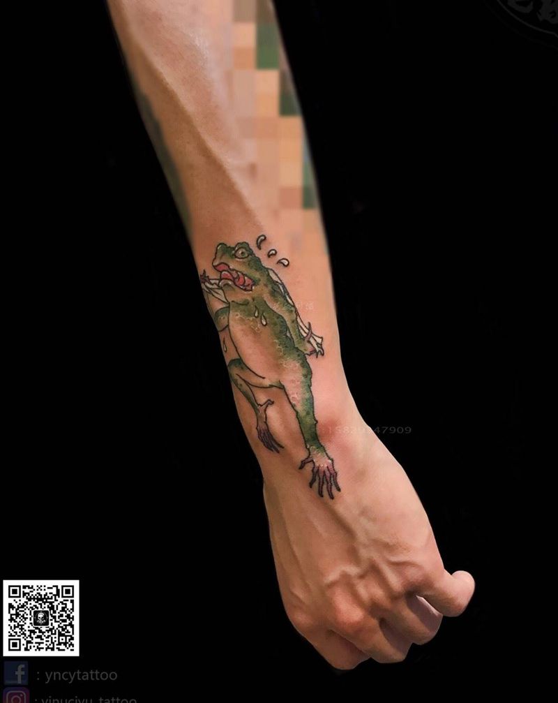 当前位置: 首页 >陕西省西安市纹身店-艺奴刺域纹身图案>青蛙系列纹身图片_手臂手部新传统艺奴刺域原创纹身图案