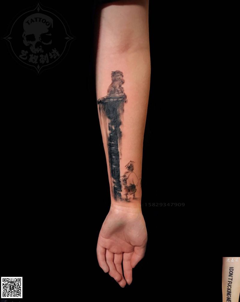 和尚老师创作—水墨风 古迹一角 帮美女遮盖旧纹身.纹身图片_手臂水墨艺奴刺域原创纹身图案
