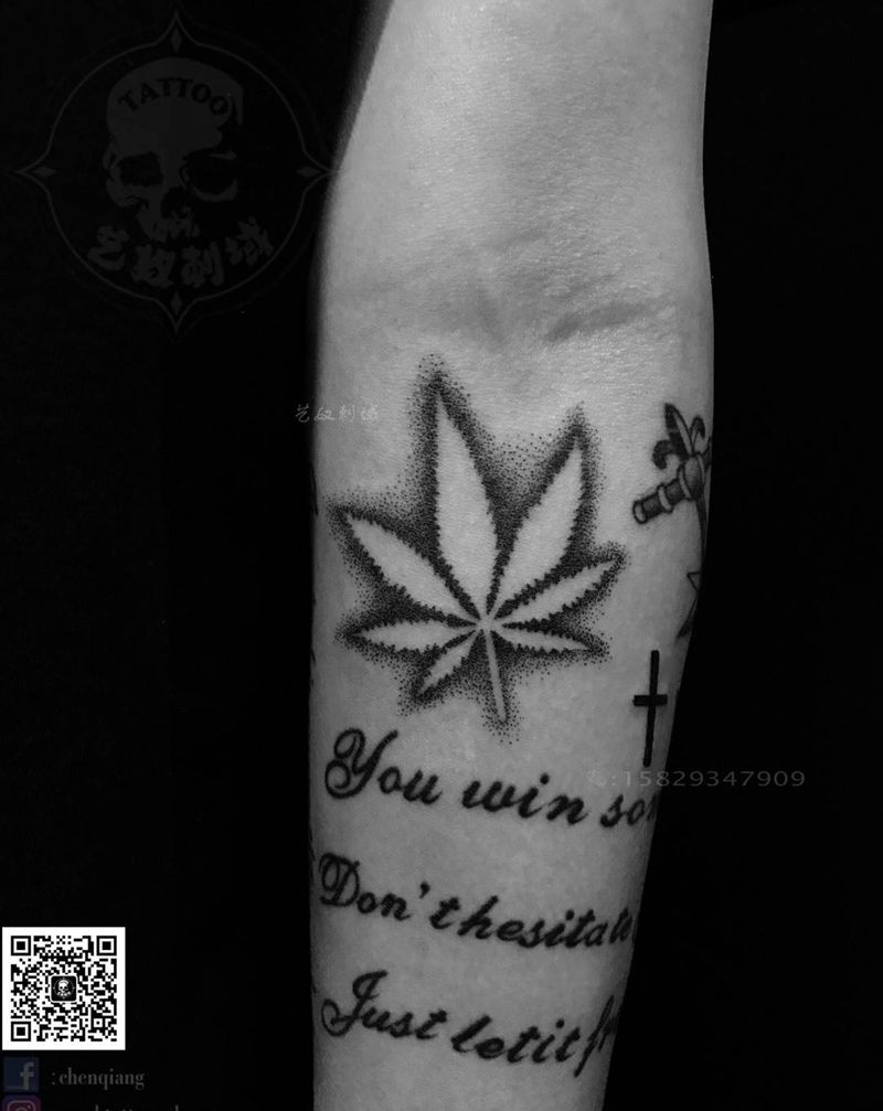 点刺枫叶纹身图片_手臂点刺艺奴刺域纹身图案