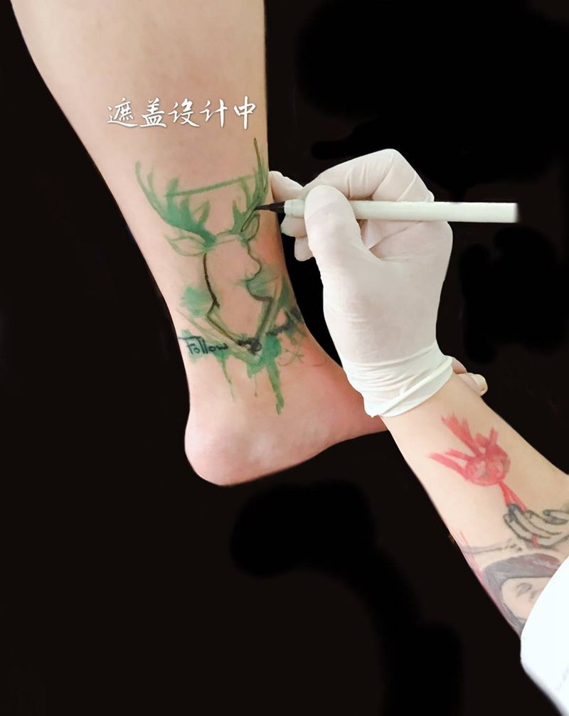 当前位置: 首页 >陕西省西安市纹身店-艺奴刺域纹身图案>鹿遮盖纹身图片_脚部腿部水彩水墨艺奴刺域纹身图案