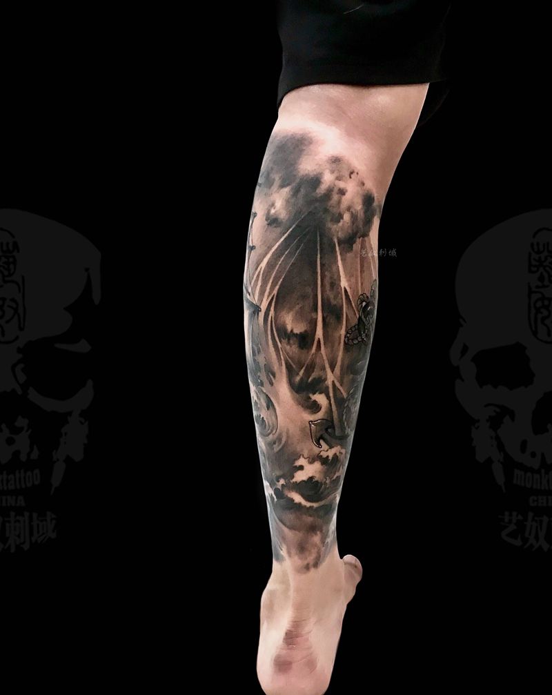 当前位置: 首页 >陕西省西安市纹身店-艺奴刺域纹身图案>船锚⚓️船帆纹身图片_腿部纹身图案