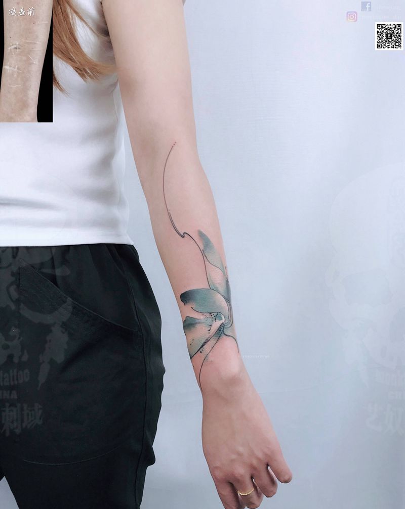 疤痕遮盖纹身图片_手部手臂水彩水墨纹身图案