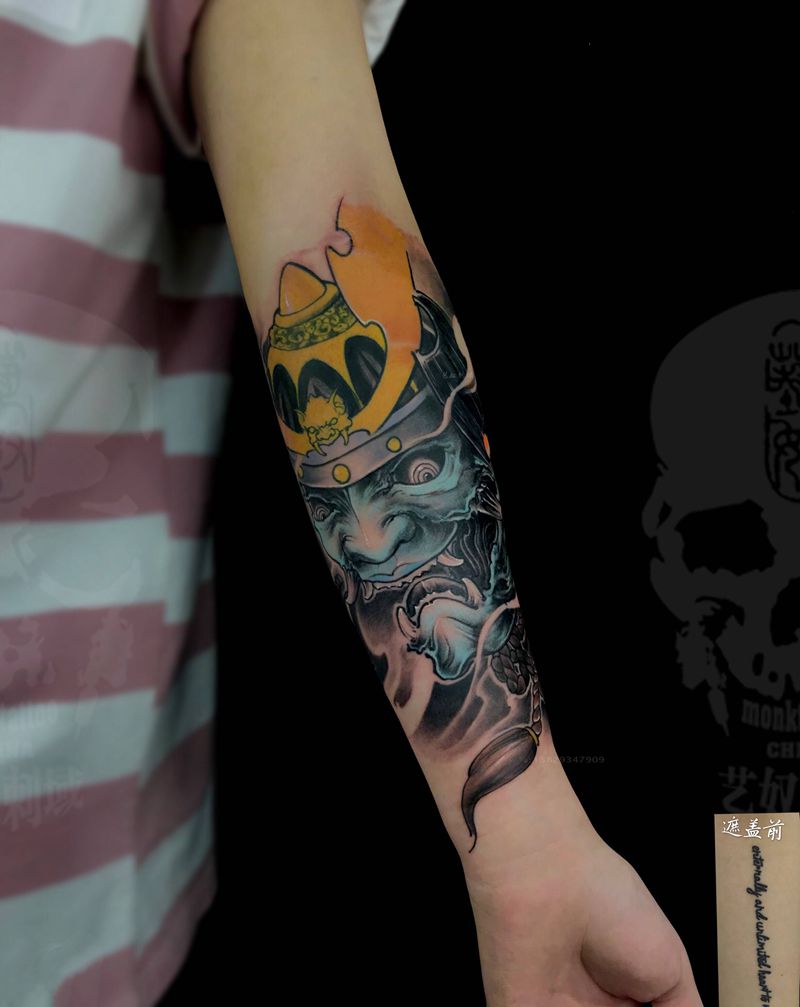 当前位置: 首页 >陕西省西安市纹身店-艺奴刺域纹身图案>般若遮盖纹身图片_手臂纹身图案