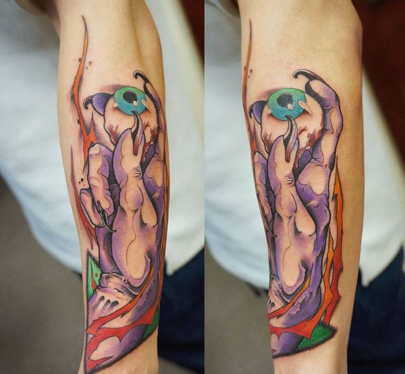 当前位置: 首页 >陕西省西安市纹身店-捌位TATTOO 纹身图案>这还叫什么名字?捏爆你的眼?纹身图片_成品手臂欧美鬼神人物纹身图案