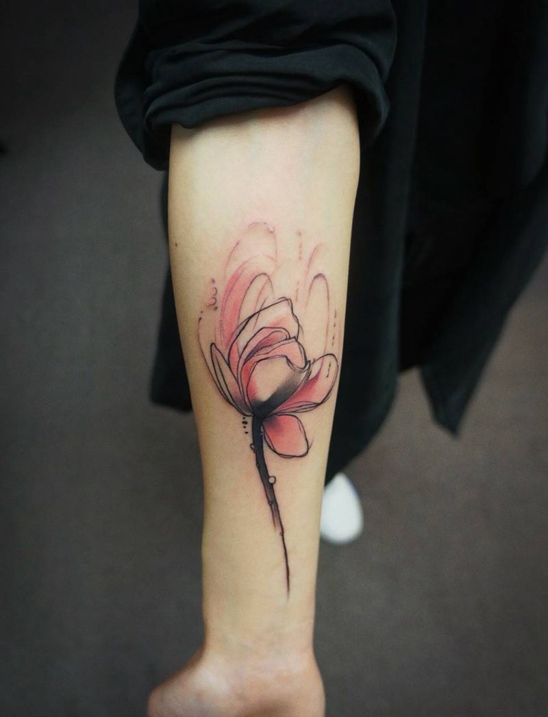 当前位置: 首页 >陕西省西安市纹身店-捌位TATTOO 纹身图案>水墨莲花纹身图片_成品手臂欧美清新国画植物纹身图案