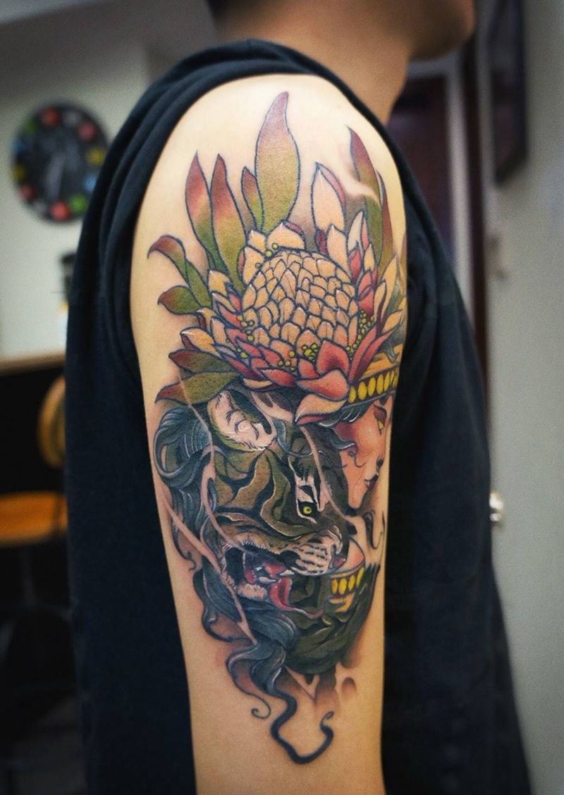 当前位置: 首页 >陕西省西安市纹身店-捌位TATTOO 纹身图案>美女与大猫纹身图片_成品手臂欧美人物动物图腾纹身图案