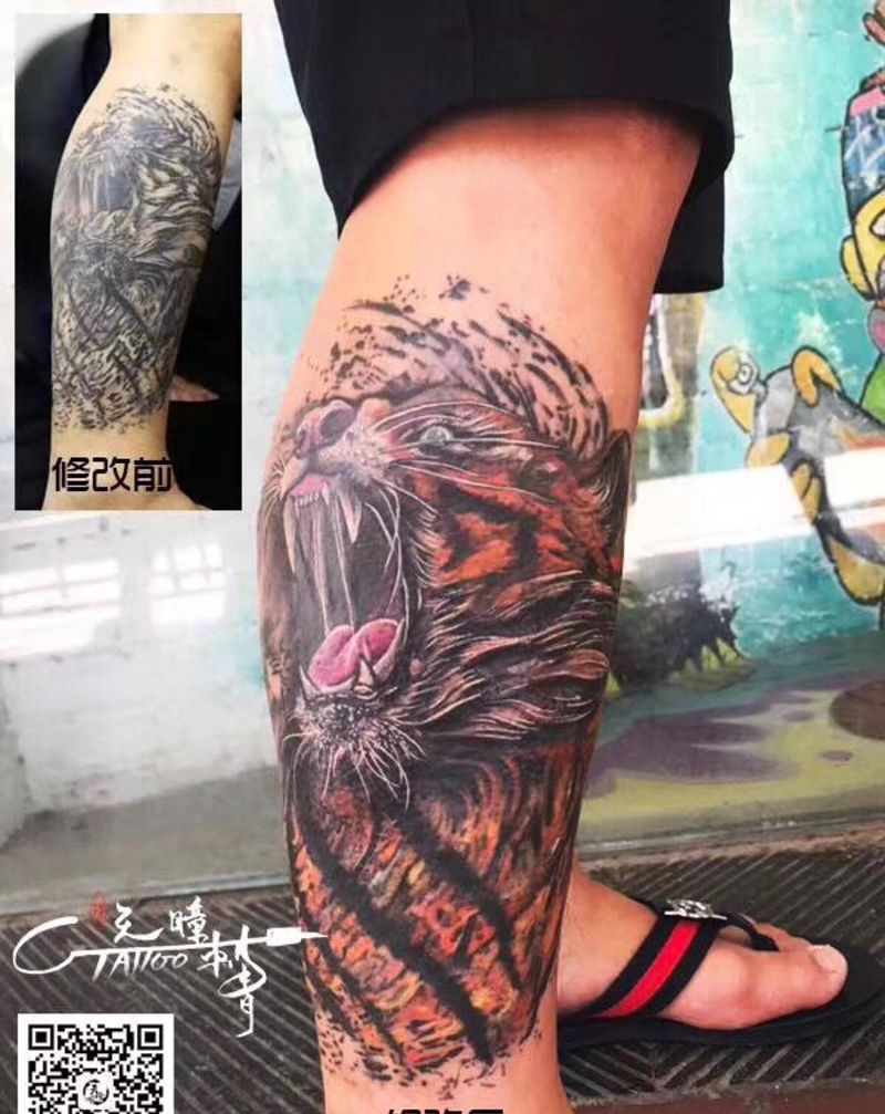 当前位置: 首页 >陕西省西安市纹身店-天瞳刺青处纹身图案>修改纹身老虎纹身图片_腿部欧美写实纹身图案