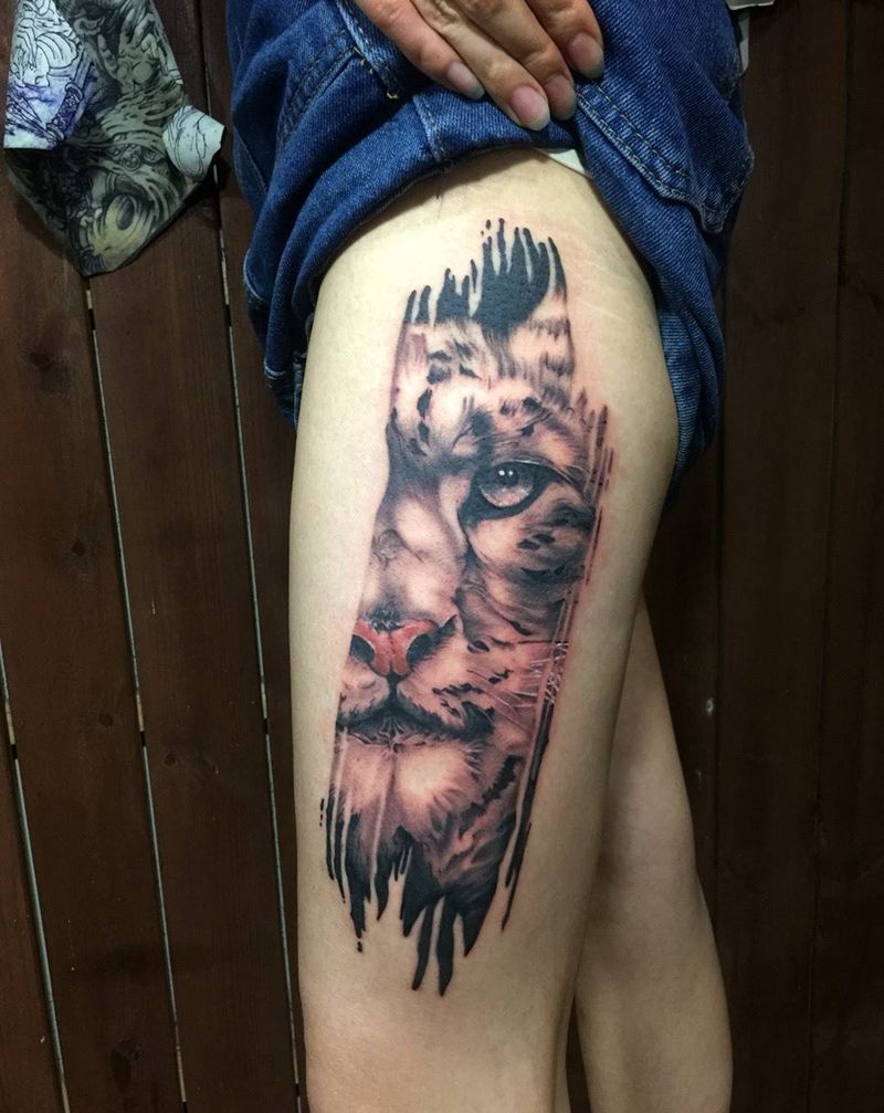 • T网红王老大花腿龙纹身图片_腿部新传统纹身图案