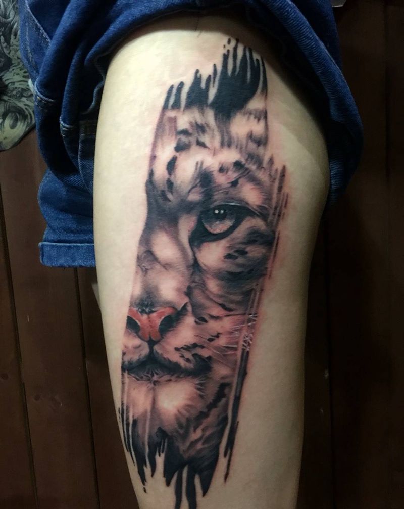 • T网红王老大花腿龙纹身图片_腿部新传统纹身图案