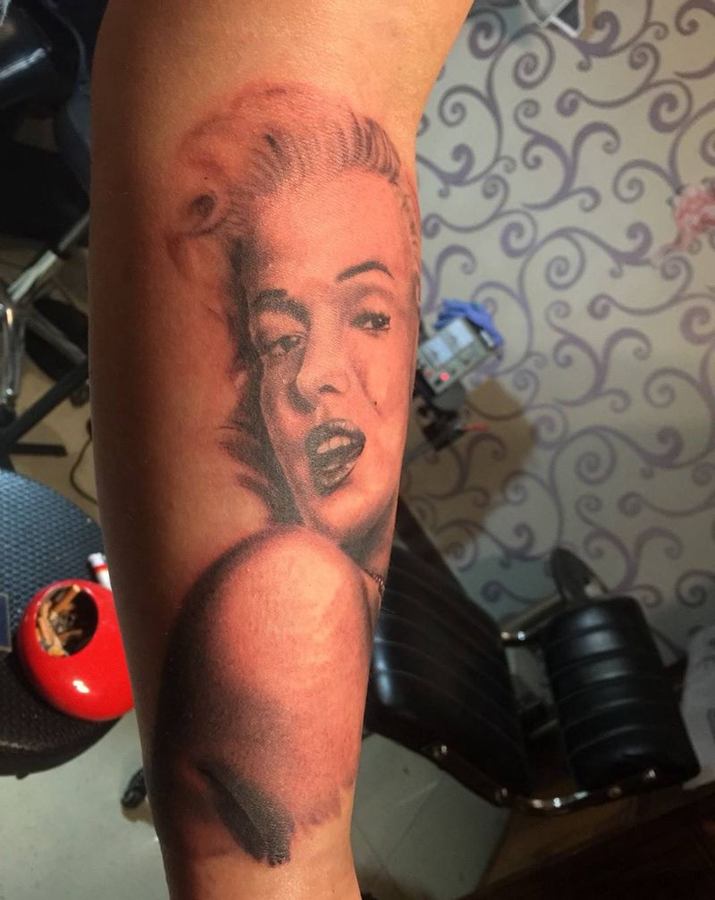 当前位置: 首页 >陕西省西安市纹身店-天瞳刺青处纹身图案>梦露纹身图片
