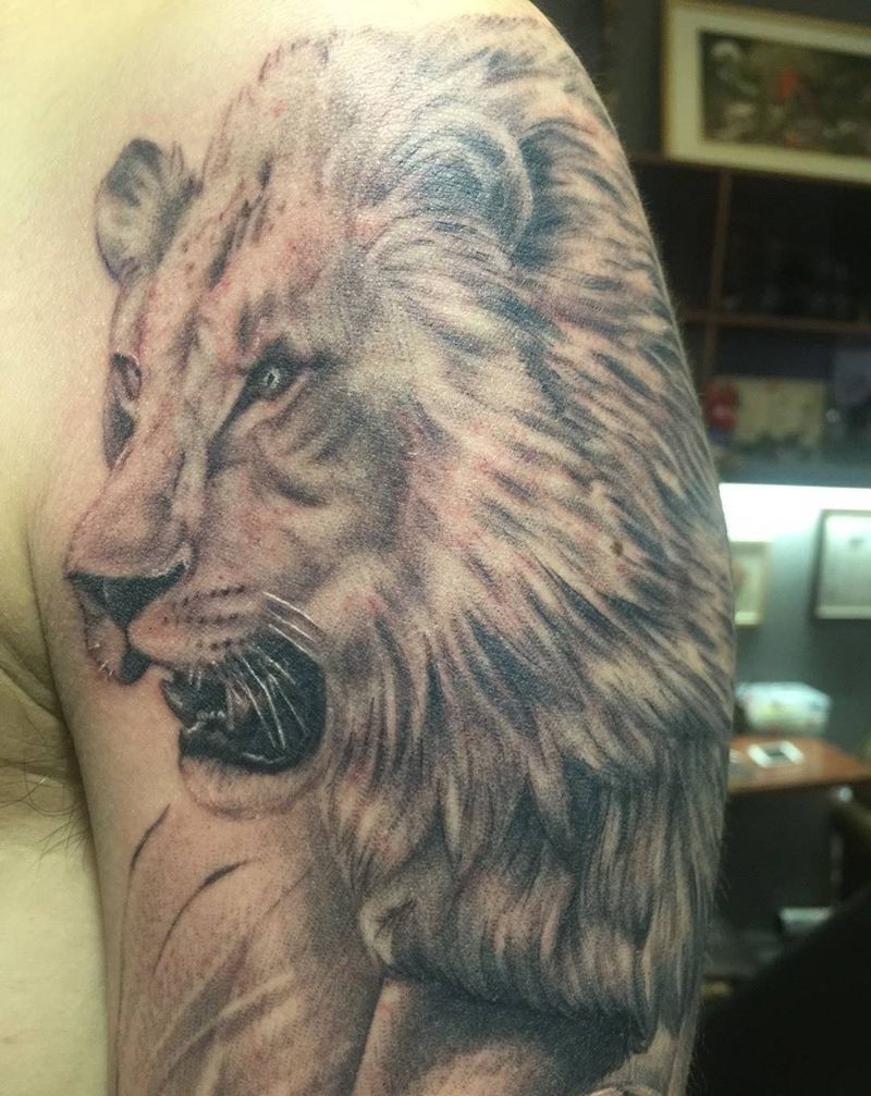 当前位置: 首页 >陕西省西安市纹身店-天瞳刺青处纹身图案>狮子踢足球纹身图片