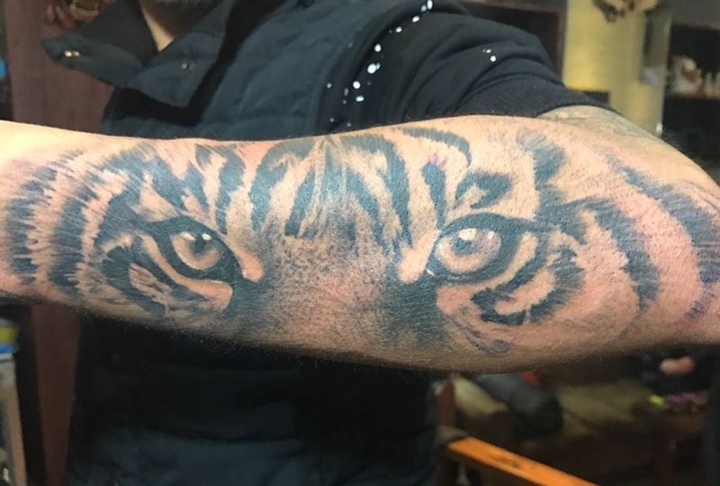 当前位置: 首页 >陕西省西安市纹身店-天瞳刺青处纹身图案>虎虎生威纹身图片_成品手臂欧美写实动物西安纹身图案