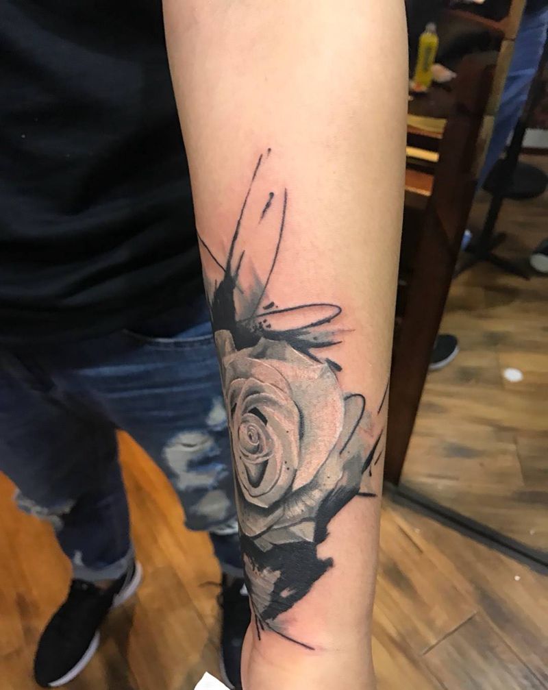 玫瑰纹身图片_成品手部欧美清新写实静物植物西安纹身图案