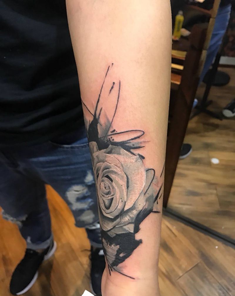 玫瑰纹身图片_成品手部欧美清新写实静物植物西安纹身图案