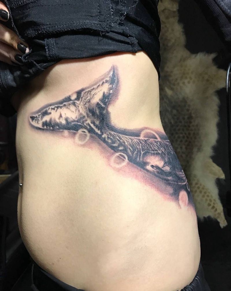 当前位置: 首页 >陕西省西安市纹身店-天瞳刺青处纹身图案>蓝鲸纹身图片_成品腰部写实欧美动物西安纹身图案