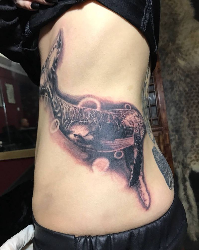 当前位置: 首页 >陕西省西安市纹身店-天瞳刺青处纹身图案>蓝鲸纹身图片_成品腰部写实欧美动物西安纹身图案