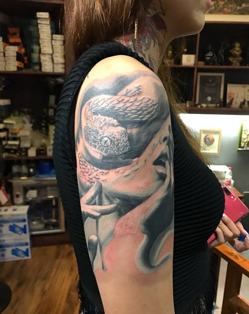 美女与蛇纹身图片_成品肩部欧美人物西安纹身图案