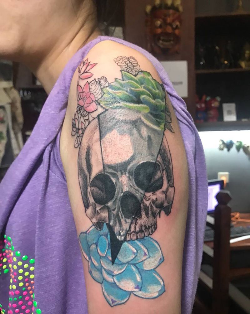 当前位置: 首页 >陕西省西安市纹身店-天瞳刺青处纹身图案>骷髅与多肉纹身图片_成品手臂欧美静物西安纹身图案