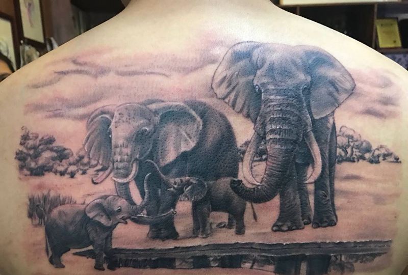 当前位置: 首页 >陕西省西安市纹身店-天瞳刺青处纹身图案>大象的一家纹身图片