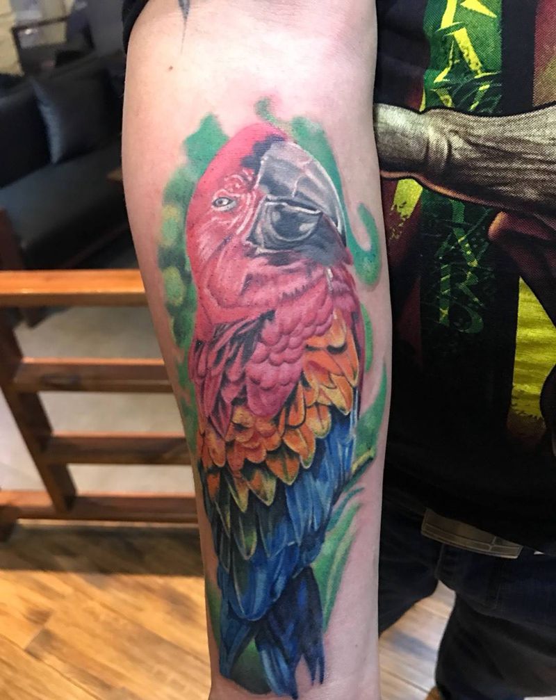 当前位置: 首页 >陕西省西安市纹身店-天瞳刺青处纹身图案>鹦鹉纹身图片_成品手臂欧美写实动物西安纹身图案