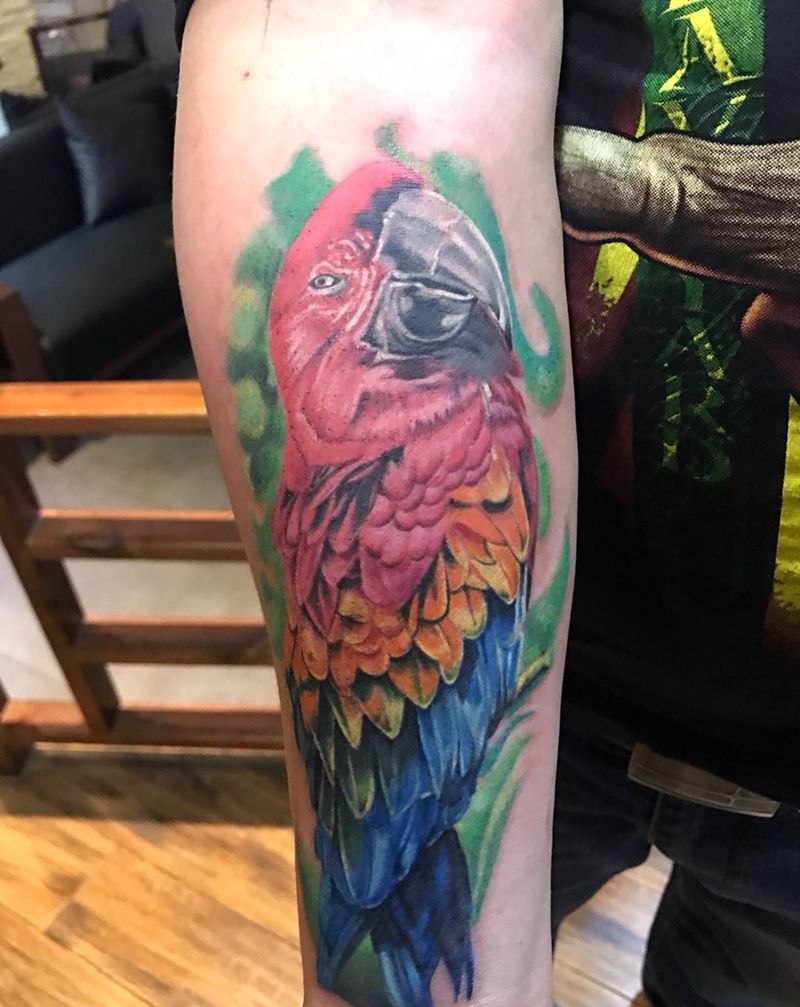 当前位置: 首页 >陕西省西安市纹身店-天瞳刺青处纹身图案>鹦鹉纹身图片_成品手臂欧美写实动物西安纹身图案