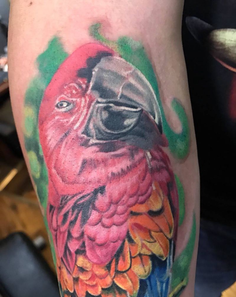 当前位置: 首页 >陕西省西安市纹身店-天瞳刺青处纹身图案>鹦鹉纹身图片_成品手臂欧美写实动物西安纹身图案