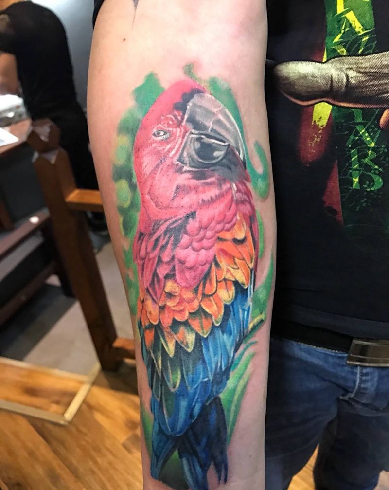 当前位置: 首页 >陕西省西安市纹身店-天瞳刺青处纹身图案>鹦鹉纹身图片_成品手臂欧美写实动物西安纹身图案