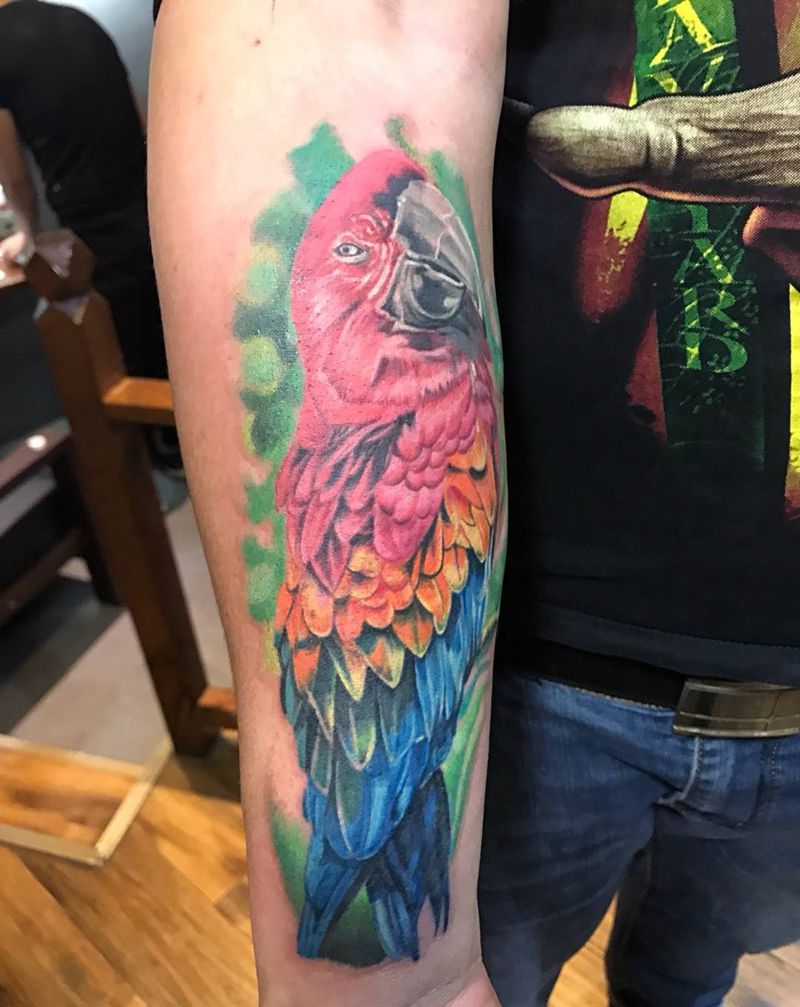 当前位置: 首页 >陕西省西安市纹身店-天瞳刺青处纹身图案>鹦鹉纹身图片_成品手臂欧美写实动物西安纹身图案