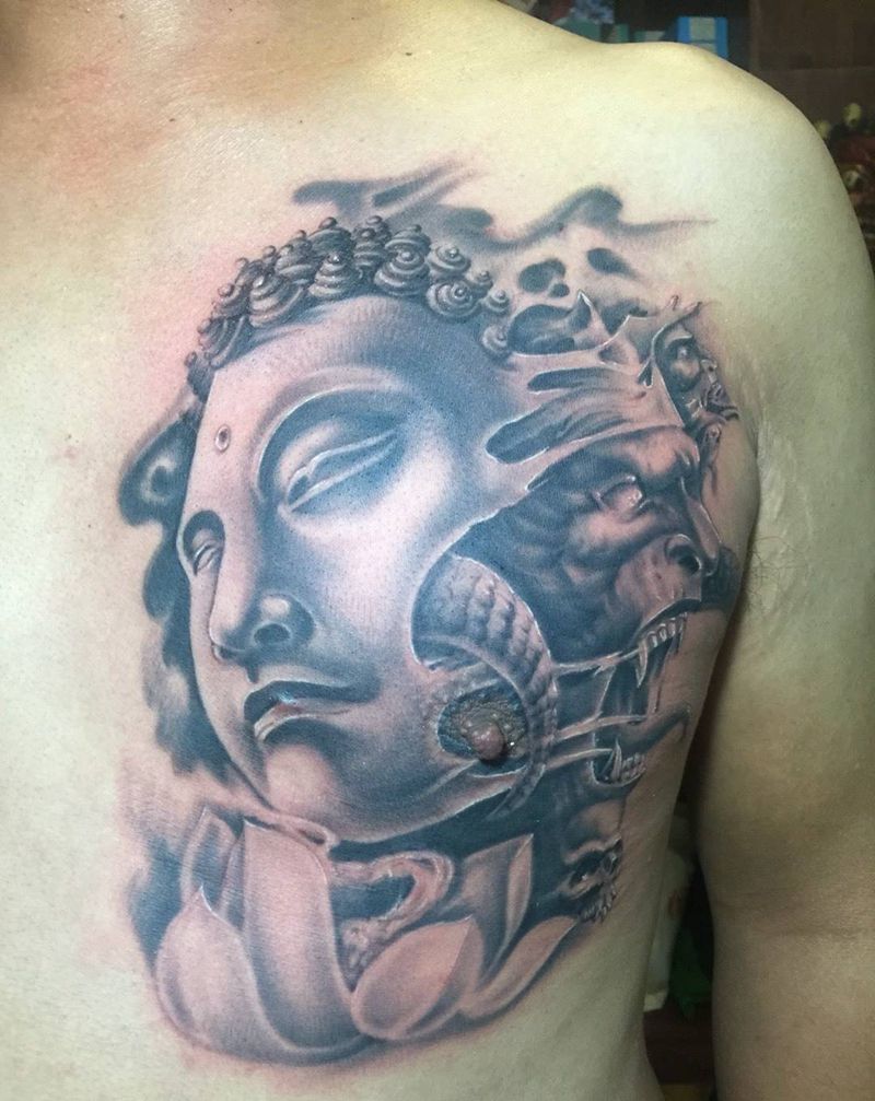 一念之间纹身图片_胸部成品传统人物纹身图案