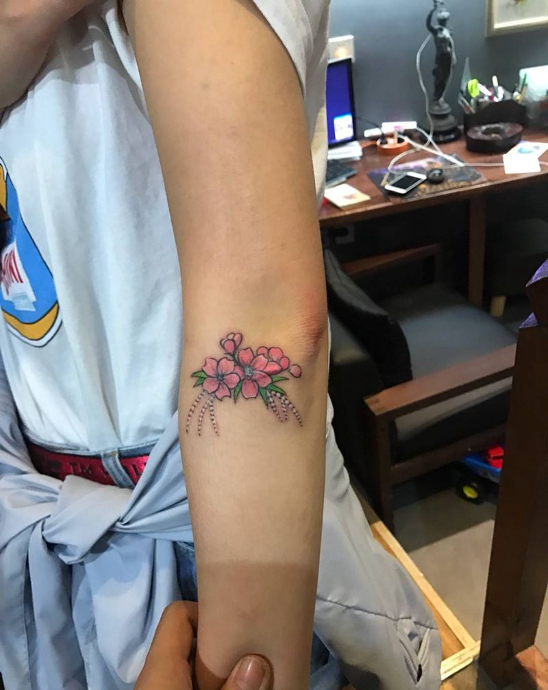 小樱花纹身图片_成品手臂欧美植物西安纹身图案