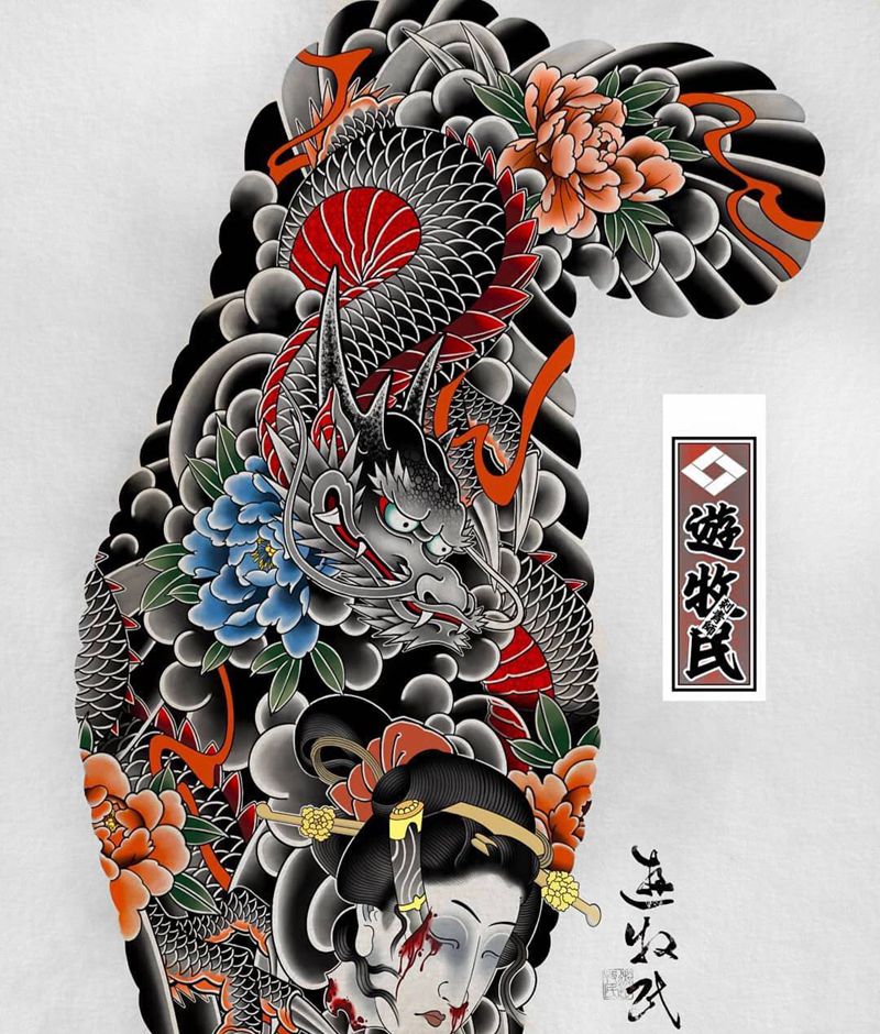 • T云龙九郎纹身图片_背部老传统云龙九郎纹身图案